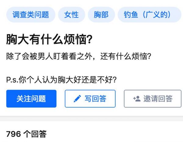 例如这种,“ 女孩子胸大是怎样的一种体验 ”
