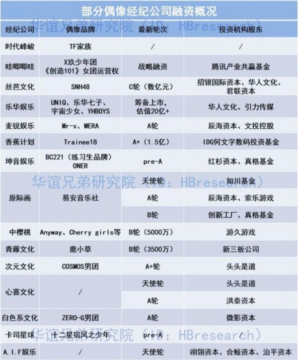 受视频平台两档综艺节目《创造101》和《偶像练习生》的带动,2018年中大量偶像公司进入资本视野,这一年被称为“中国偶像经纪元年”。