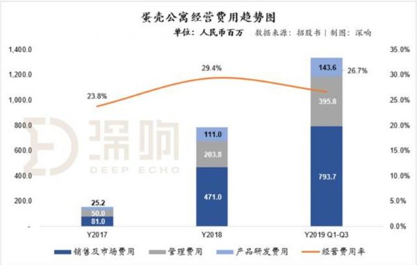 在经营费用方面,公司在2019年前9个月经营费用率为26.7%,相比较2018年呈现下降趋势,这也进一步体现蛋壳在保证扩张速度的基础上,持续提升内部经营效率。