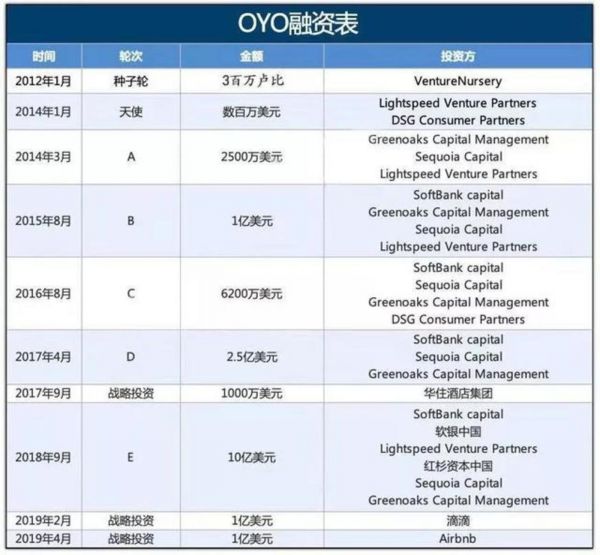 2015年8月,OYO启动B轮融资,从软银集团那里筹集到1亿美元。此后,孙正义的软银几乎出现在OYO后续的每一轮正式融资名单中,且不断加码。