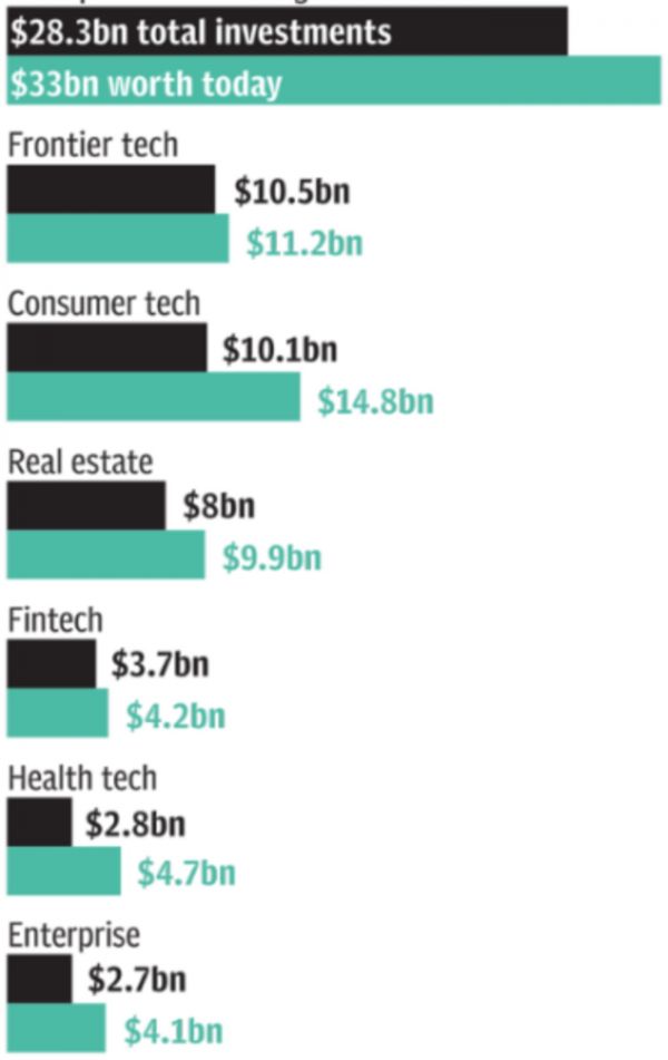 软银旗下愿景基金的投资在全球范围内推动着新兴企业和科技创企的融资环境,截至目前(9月底),拥有沙特阿拉伯财团支持的愿景基金(Vision Fund),已经向88家公司投资了707亿美元。不包括退出的部分,这些投资目前价值776亿美元。