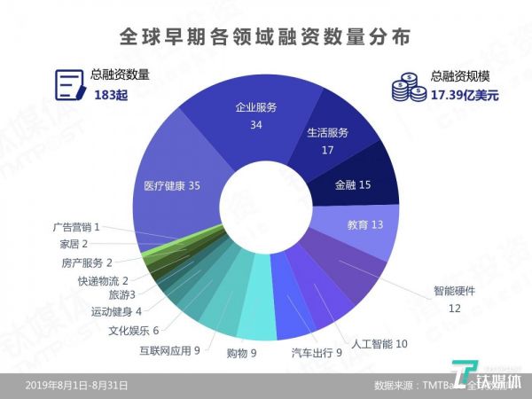 钛媒体「潜在投资」2019年9月 一级市场月度报告发布:国外融资金额近中国3倍,企服、医疗、金融持续领跑