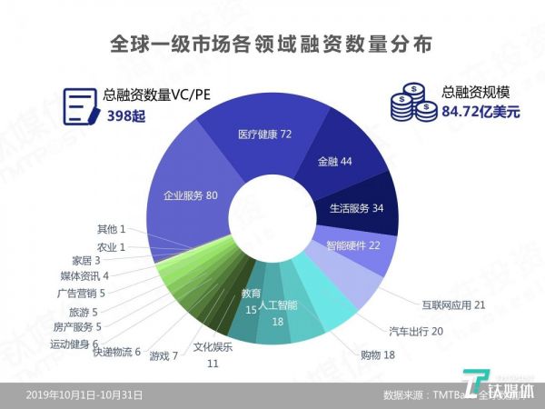 「潜在月报」10月398起融资:国内亿规模融资43起,国外国外企业服务、金融、医疗健康火热