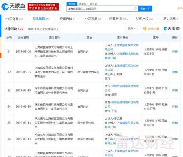 雷达财经查询发现,除了被旗下主播起诉,熊猫互娱还涉及多种类型纠纷。截至目前,公司共涉及127起诉讼。