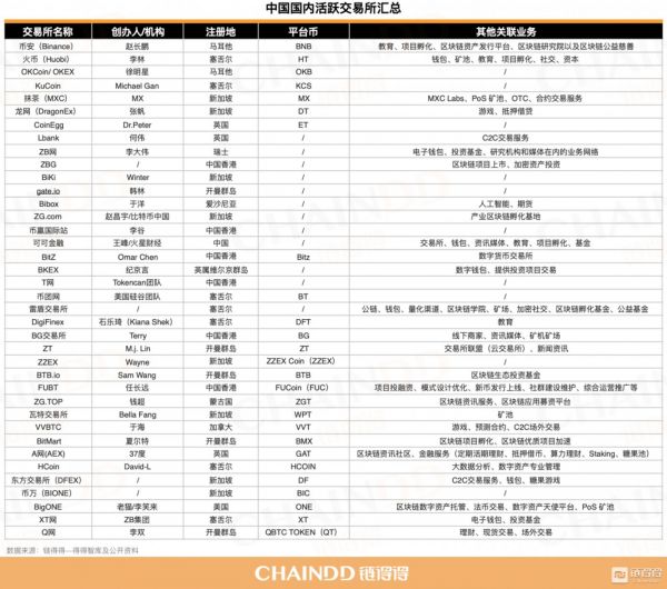 46.国内目前有哪些活跃的数字货币交易所,运营主体都是谁?