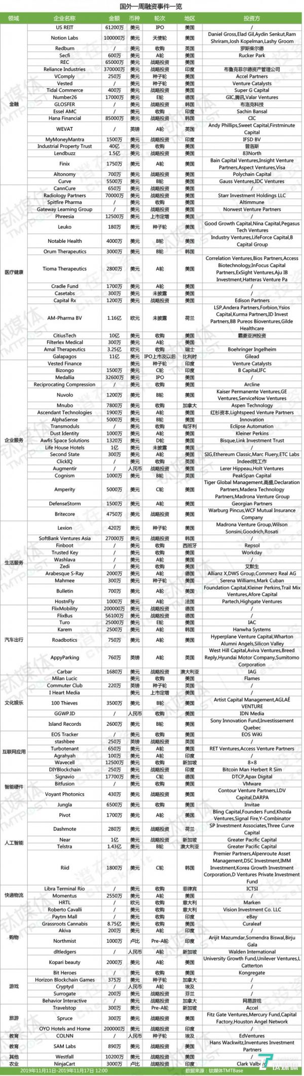 第44周 | 收录109起投融资事件,本周国内融资事件严重下滑,国外企服、金融、医疗健康投资继续领跑「潜在周报」