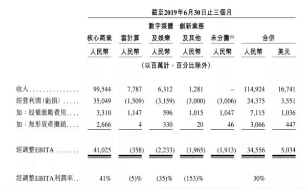 阿里巴巴2019年二季度分业务板块收入和利润情况(来源:招股说明书)