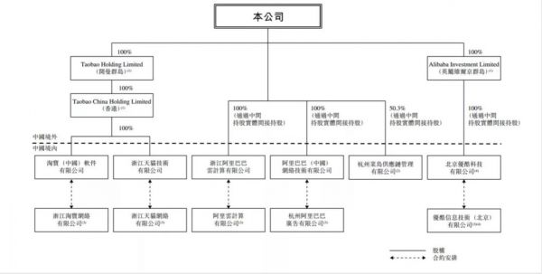 阿里巴巴2019年港股IPO招股书公布的VIE结构简图(来源:招股说明书)