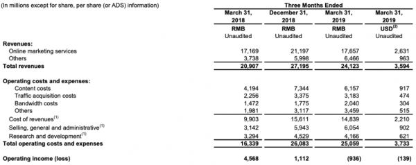 仔细拆解这份财报,百度的亏损来自营收与成本的双重压力。