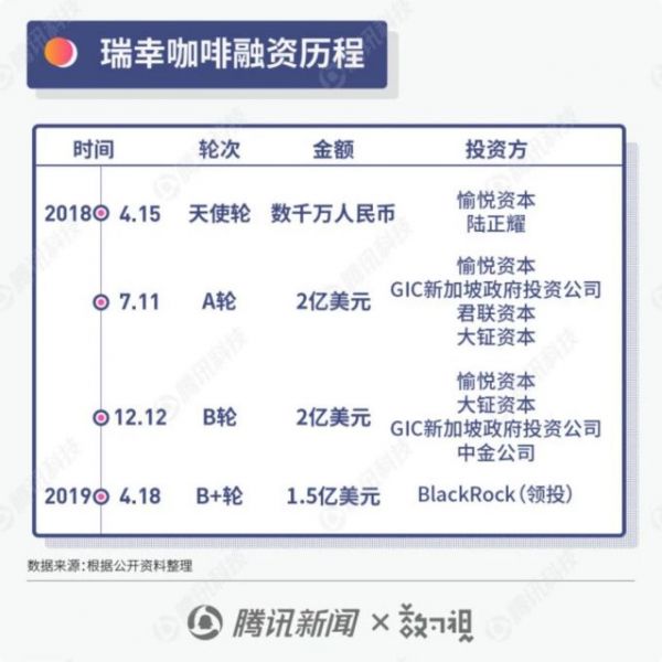 随后的A轮、B轮中,逐渐引入大钲资本资本、愉悦资本、GIC等更多的机构投资者。而B-1轮中来自全球最大资管集团贝莱德(BlackRock)的1.5亿美元,也让瑞幸咖啡获得全球金融领域的认可,一定程度上为其赴美IPO增添新柴火。