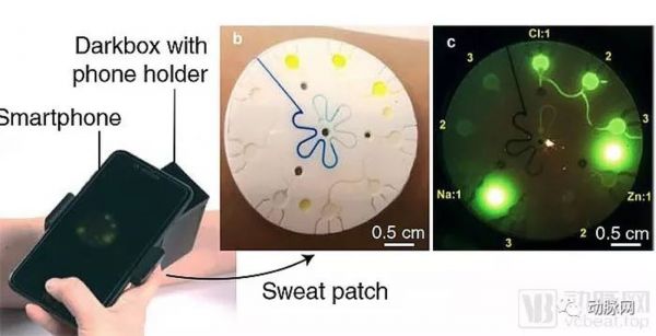 一个国际合作团队已经设计出一个黏合在皮肤上的微流控系统,通过多个采样通道和对应的储液仓,配合汗液流失的定量分析,它可以监测多个汗液生物标记物。