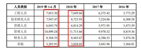 节点财经观察到,紧张的资金状况已经影响到公司的员工薪酬制度。从招股书可见,2016-2018年公司员工薪资连续两年都是处于增长状态,但到了2019年,除了处于底层的采购人员、生产人员之外,包括技术研发人员、营销人员,以及高层管理人员等,都出现了工资大幅下滑的现象。