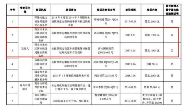 而就在报告期内,德才装饰及其子公司存在多次行政处罚,其中处罚金额 2 万以上以及与税务、环保处罚多达10起,包括未取得施工许可手续而擅自施工、纳税逾期未申报、施工噪声扰民等违规事项。