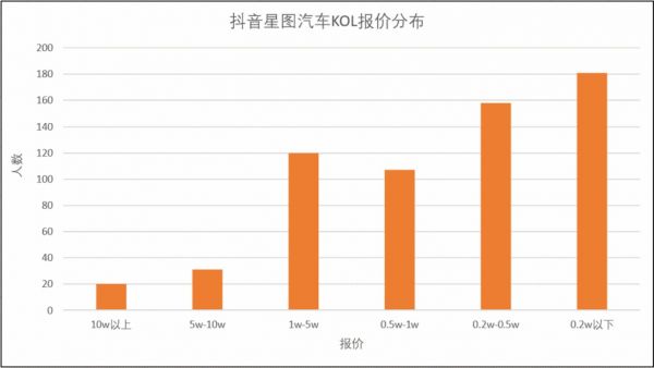 目前,抖音平台拥有10W+粉丝的汽车KOL有583个,是星图所有分类中人数最少的垂类之一。