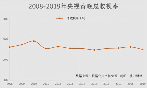 央视春晚一向是热门。近20年来,央视春晚的收视率除2015年以外,都超过了30%。特别是2019年,春晚跨屏总收视率达30.07%,网络端总收视率2.74%,观众总规模超过11.7亿。这些数据,创下了央视春晚收视传播新纪录。