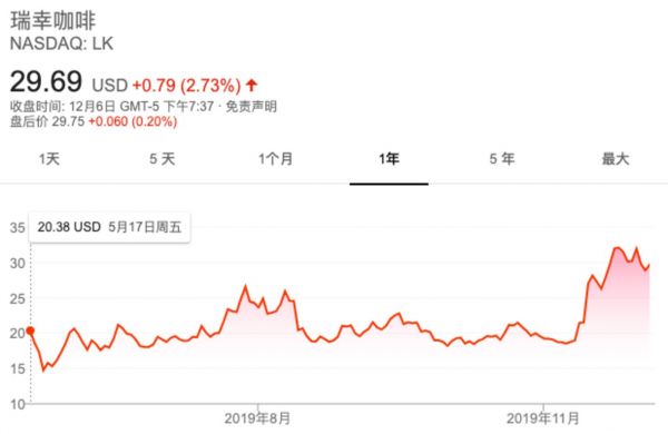 三季度财报多点开花,得益于此,瑞幸股价走出了出乎大多数人意料的曲线:股价一路飙升,11月12日收盘价不足19美元,11月26日的收盘价就已经达到32.10美元,比财报发布前涨了69.13%。