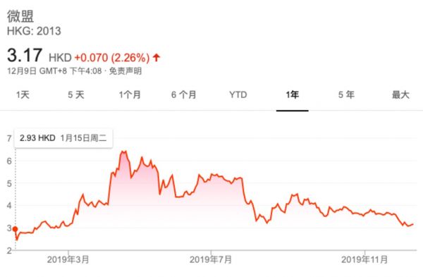 发行价:2.8港元开盘价:3.1港元12月6日收盘价:3.1港元1月15日,微信第三方服务提供商微盟集团在香港联交所挂牌上市,成为“新经济SaaS第一股”,首日开盘价较发行价上涨10.71%。以2.93港元/股收盘,较开盘价上涨4.64%。上市次日,微盟股价一度闪崩近30%。