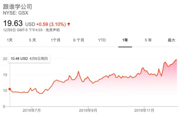 目前,跟谁学股价近20美元,相较发行价增长近一倍。