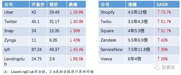 还有一个原因,SaaS类企业服务公司的模式其实非常相似,有很多指标和工具能够用来衡量公司的好坏,也就是价值很容易量化。对于二级市场投资人来讲,降低了判断和投资的门槛,导致了资金的快速集中。从图中可以看到,在二级市场里的表现,ToC公司的股价基本都是破发,下跌基本都超过30%,而这些ToB公司基本上都在四到五年,以五到六倍的速度高速增长,体现了非常高的CAGR值(年复合增长率)。