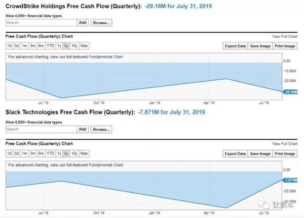 再来分析对标的企业服务公司,首先是Crowdstrike和Slack,看起来自由现金流也都是负数。那么问题来了,是不是有价值的公司自由现金流就一定为正呢?