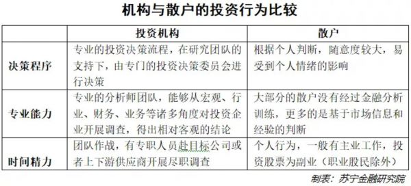 以下是在股票投资中,机构与散户的行为对比: