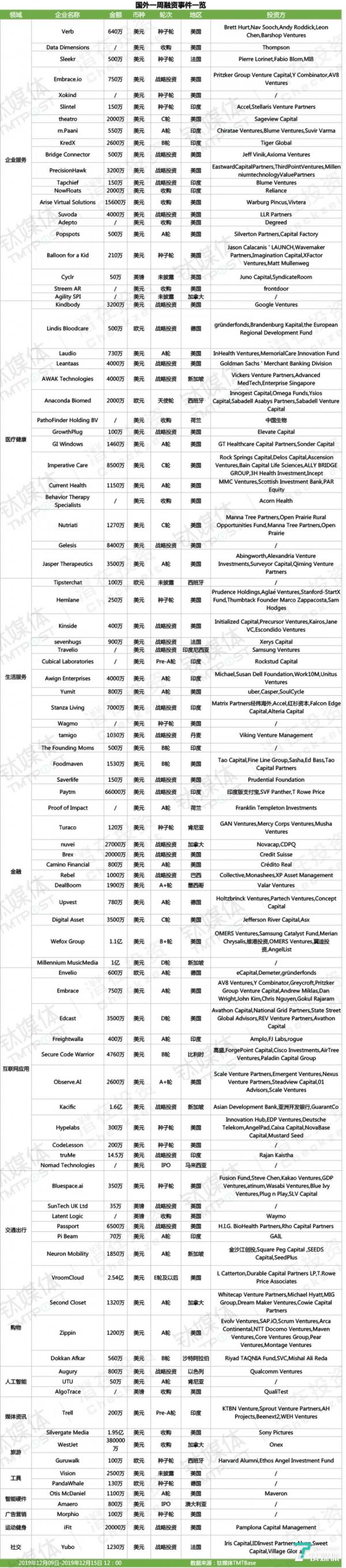 国外一周融资事件一览