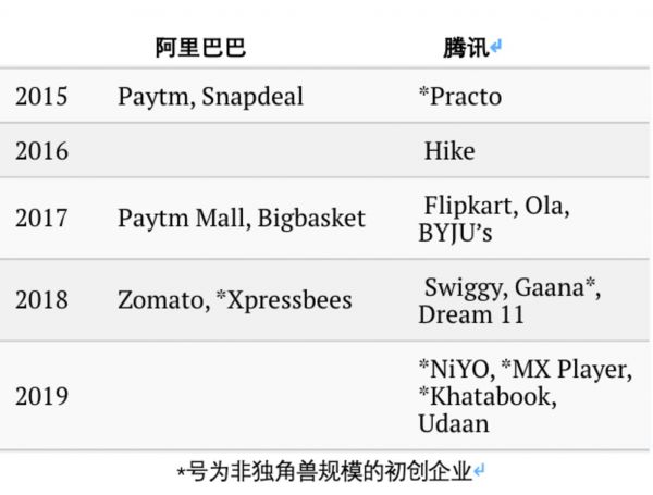 不仅是阿里巴巴,国内另一位科技巨头腾讯同样在印度市场与阿里巴巴进行着市场争夺战,不断对当地的互联网创企进行大举投资。