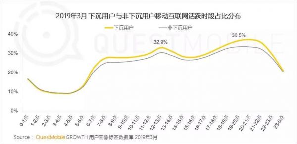 3、相比非下沉用户,下沉用户拥有更多闲暇时间刷手机,在醒着的时段(6-24点),活跃用户占比都更高