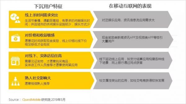 1、下沉用户移动互联网应用典型特征:杀时间需求突出,对价格和收益敏感、信赖线下、受他人影响大。很多应用正是抓住这些特点在下沉市场获得显著增长