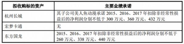 相比高溢价的资产评估值及交易价格,标的公司却并未给出很高的业绩承诺,宏梦卡通与滁州创意园甚至无业绩承诺: