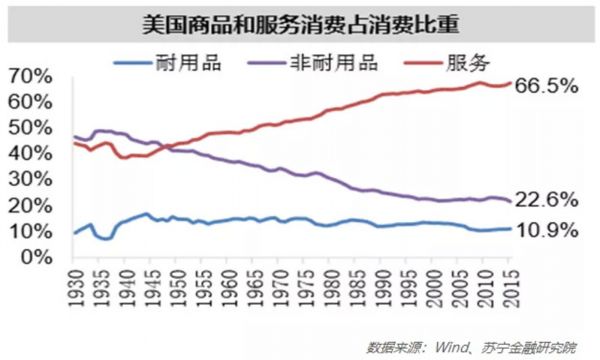 通常一个国家消费升级的路径是沿着“非耐用消费品→耐用消费品→服务消费”发展的。美国的历史经验表明,当人均GDP超过2000美金时,耐用消费品和服务消费占比提升,消费升级趋势明显;当人均GDP超过5000美金时,服务性消费开始逐步占据主导地位。耐用消费品的消费升级已经诞生了诸如格力、美的等一批明星公司,未来的投资机会主要诞生在服务消费领域,而知识付费可能会成为投资机构在服务消费领域角逐的主战场。
