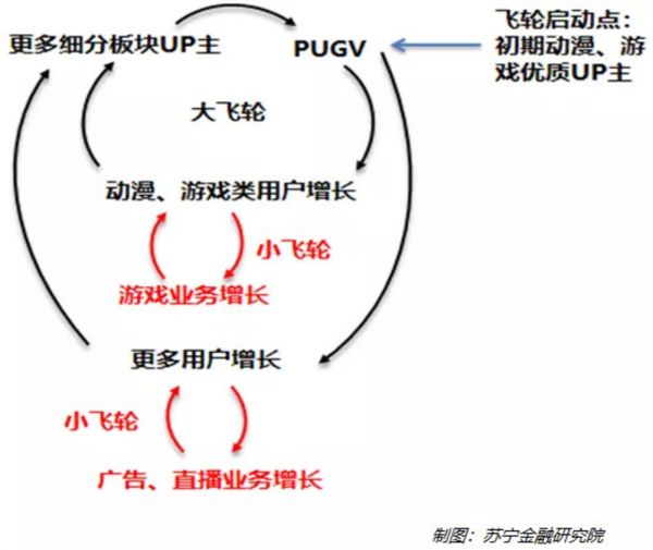 大飞轮带来用户的持续增长,小飞轮带来营收的快速增长,B站的飞轮效应潜力巨大,值得期待。