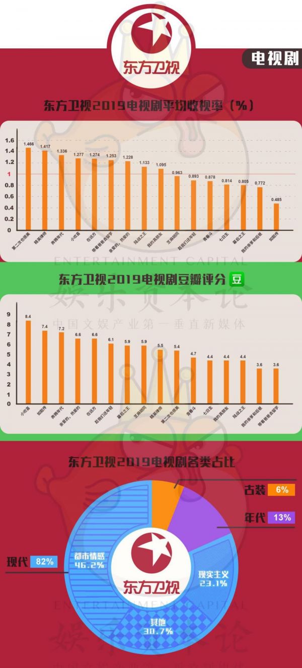 在购剧层面上,2019年东方卫视播出的剧集中现代题材占比高达82%,古装剧只有1部《如懿传》,年代戏也较少。现代剧中,又以都市情感为重。对东方卫视来说,高大上的都市情感与现实主义一直较受观众青睐。另外,东方卫视因常年有北方受众基础,因此今年也与北京卫视联播了不少内容。