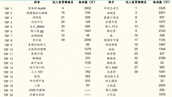 在抖音的TOP 20销售达人里40%的达人粉丝量低于百万,粉丝量并不决定销售量。