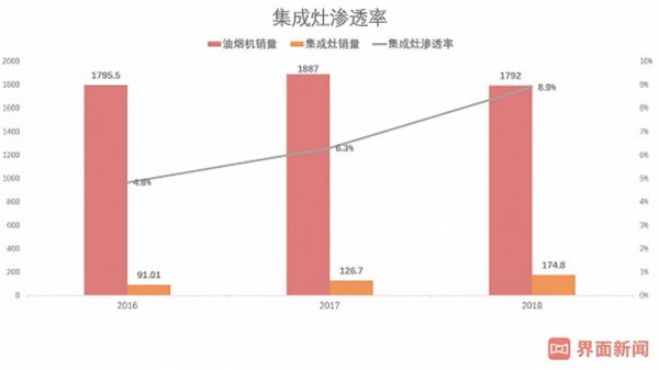 第二,2018年集成灶在烟灶类产品中的渗透率接近9%,也就是100个想要买烟灶产品的用户中有9个会选用集成灶。从2019年态势看,集成灶渗透率大概率超过10%。