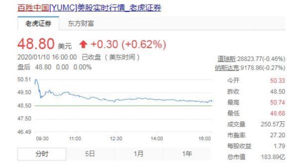 1月10日,据路透社旗下IFR消息,百胜中国正考虑于今年内赴港上市,正在与内部与外部的顾问进行会谈,尚未作出决定。消息传出后,其美股盘前大涨3%,创历史新高。截止发稿报48.8美元,最新市值183.89亿美元。