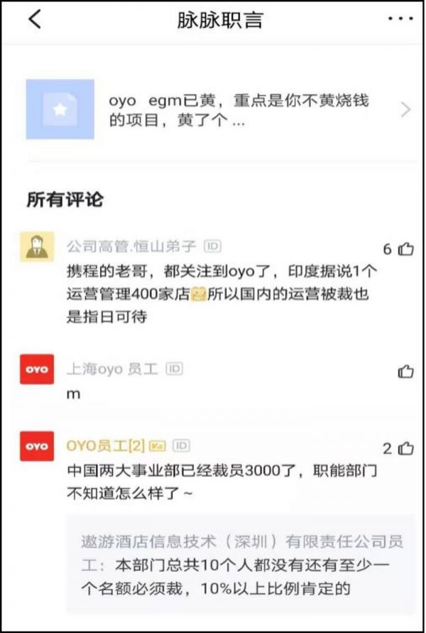 从脉脉上面的爆料来看,OYO本次裁员人数远不止彭博社报道的那600人。
