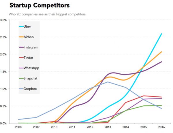 第一个研究问题是,YC 曾问这些申请项目的创始人,“谁是你的竞争对手?你最害怕的是谁?“