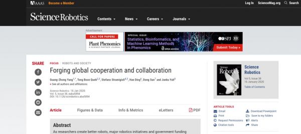 1月17日,全世界最权威的机器人领域期刊,Science 子刊《Science Robotics》(科学机器人)发布年度预测焦点报告,该报告首次提出一个新的观点:机器人行业需要打造全球合作与协同。