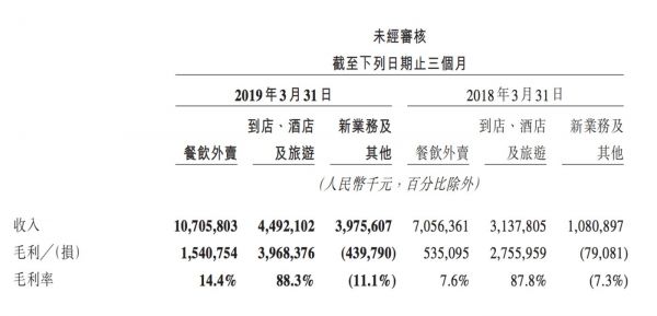 财报显示,2019年第一季度,美团新业务及其他分部继续保持增长,新业务及其他当季实现交易金额164亿元,营业收入39.8亿元,毛利率为负11.1%,环比上升12.2%。