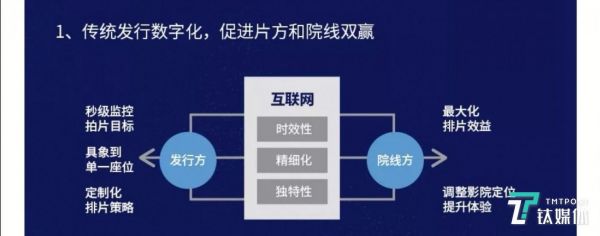 去年腾猫联盟《从相加到相融,互联网时代的电影发展研究报告》(后简称《电影发展研究报告》)显示,在发行端,院线会通过定制化的排片策略使院线产生排片效益的最大化。