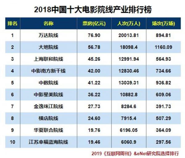 此外国内院线以万达为首的巨头已经基本形成,占据了国内电影票房的六成以上。