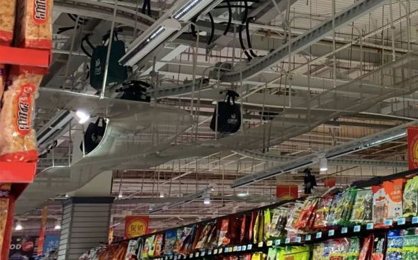 前面介绍到的悬挂系统,能帮助门店快速分拣商品。大润发还用饿了么的运力为淘鲜达提供运输服务。