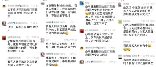 “我们认识朋友多一些,在特殊时刻恰好派上用场。”武汉光谷步行街携程门店的邹雯告诉钛媒体,在发现很多武汉客人在外地无法回家、很多酒店直接拒绝武汉人入住后,干脆直接建立多个异地群,发动人脉广泛联系各地旅游同行,拯救即将“露宿街头”的武汉游客。