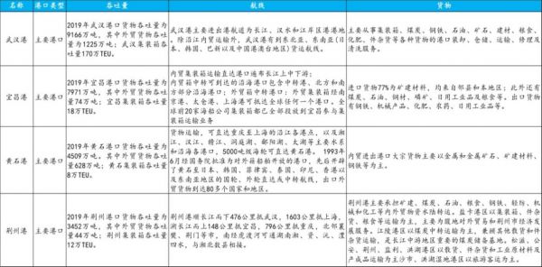 通过梳理湖北的水运,我们可以看到,湖北的主要港口武汉港、宜昌港、黄石港、荆州港的航线主要集中于内贸运输,主要运输货物种类集中在大宗商品(原油、矿石、煤炭)、机械产品、钢材、化工品。