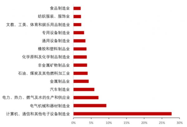 2、计算机、电子与光学设备、电气机械、通用设备整个链条均受到一定影响。产业升级的仪器仪表行业由于对计算机、电子、电气机械需求较高,或受到一定影响。