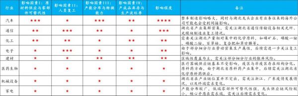 我们对涉及行业进行了行业初步调研,结合行业信息通过主观打分,“五颗星”代表供应链风险的即时性与程度最为严重。