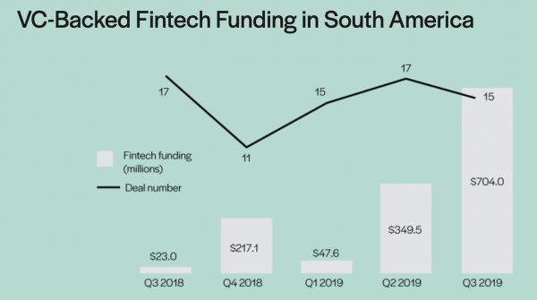 南美金融科技领域的单季度融资额将达到10亿美元的历史最高水平。