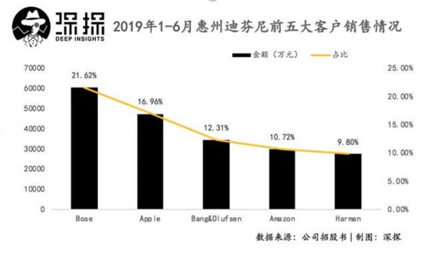迪芬尼服务客户主要包括Apple、Amazon、Bose、B&O、Comcast、Facebook、Google、Harman、Sennheiser、Sony、Zound、百度、小米及海尔等品牌厂商和科技公司,是行业内生产规模和销售规模最大的公司之一。