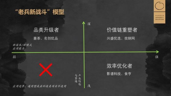 产业经验和新技术都强,不是对存量进行升级,而是将新、老有机结合,重组了产业的价值链,诞生了“次新物种”。案例包括:找钢网、兴盛优选等。